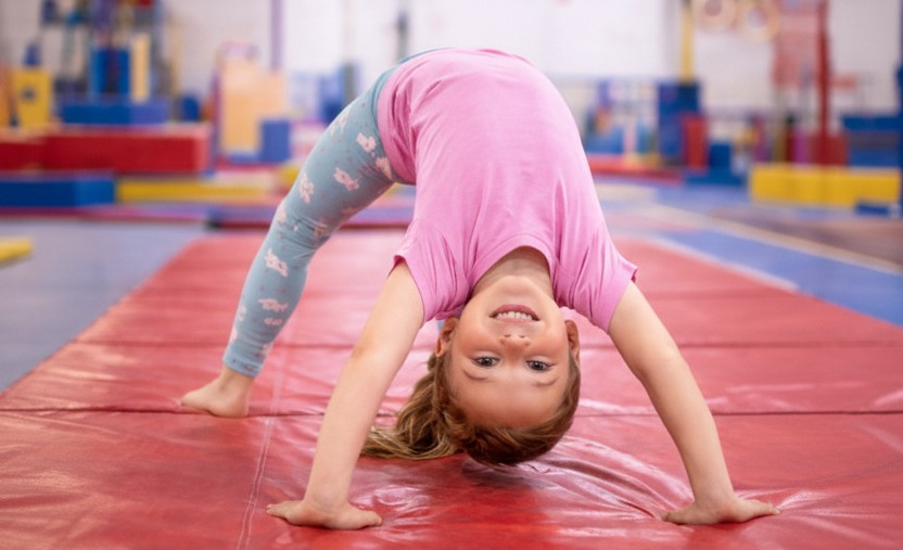 • Learning foundational gymnastics skills such as forward rolls, cartwheels, bridges, handstand progressions, and balances